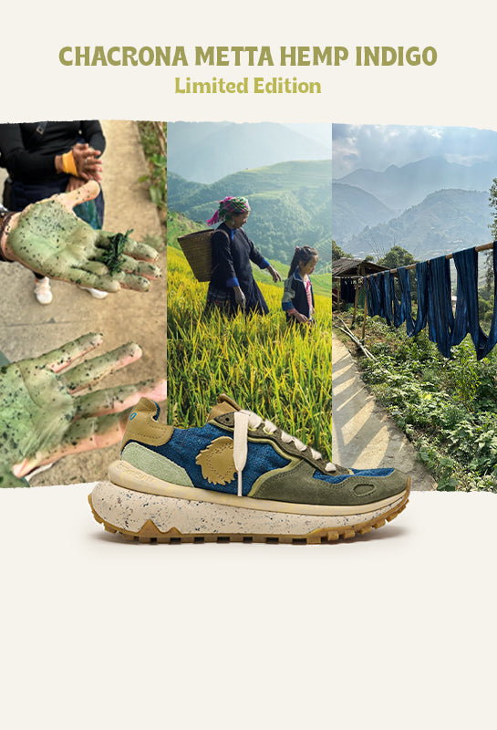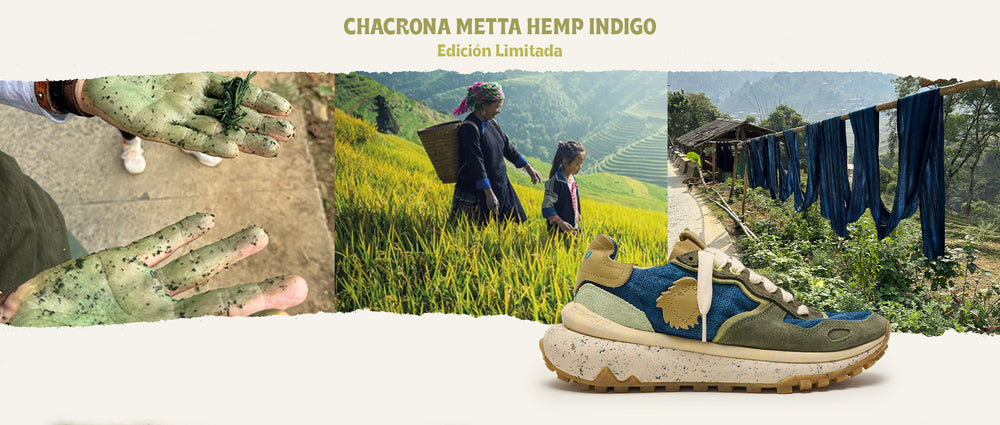 Chacrona Metta Hemp es un homenaje a la belleza natural y la tradición artesanal de Sapa Valley, en Vietnam. Inspirada en las terrazas de arroz y el proceso ancestral de tintado del cáñamo e índigo, esta edición limitada celebra la conexión profunda entre el hombre y la naturaleza.