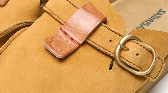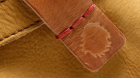 - Detalles artesanales como el cosido en la puntera y la etiqueta de cuero cosida a mano.