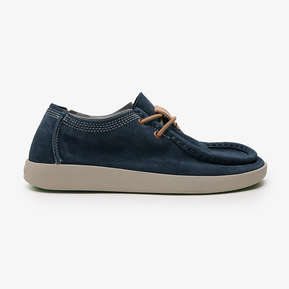 Inspirado en los mocasines "wallaby" de los años 60, esta nueva versión sin forro es aún más suave y cómoda gracias a la sustitución del cuero de plena flor por serraje. Los detalles singulares como los cordones de piel y los cosidos a mano, crean un look realmente rústico y natural.