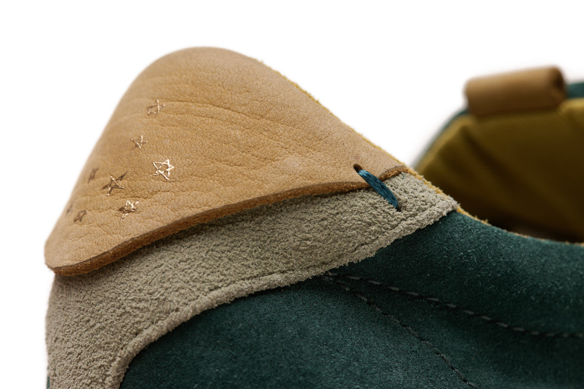 La solapa del talón refuerza esta zona, aportando resistencia y un acabado premium. A un lado, el pespunte hecho a mano une con cuidado la pieza de piel premium al cuerpo de la zapatilla; mientras que las pequeñas estrellas doradas añaden un toque sutil pero lleno de personalidad que define al modelo Stardust.