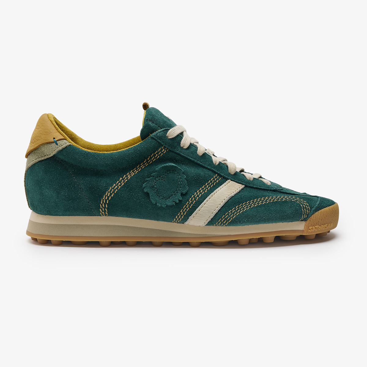 Inspirada en las icónicas botas de fútbol de los años 60, conserva su esencia retro con una franja decorativa, costuras marcadas y el logo en relieve de piel en el lateral.