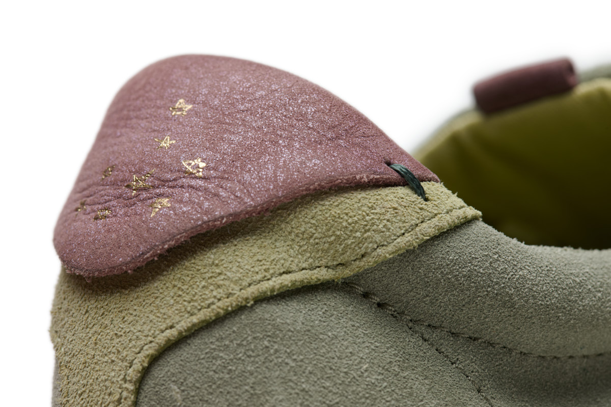 La solapa del talón refuerza esta zona, aportando resistencia y un acabado premium. A un lado, el pespunte hecho a mano une con cuidado la pieza de piel premium al cuerpo de la zapatilla; mientras que las pequeñas estrellas doradas añaden un toque sutil pero lleno de personalidad que define al modelo Stardust.