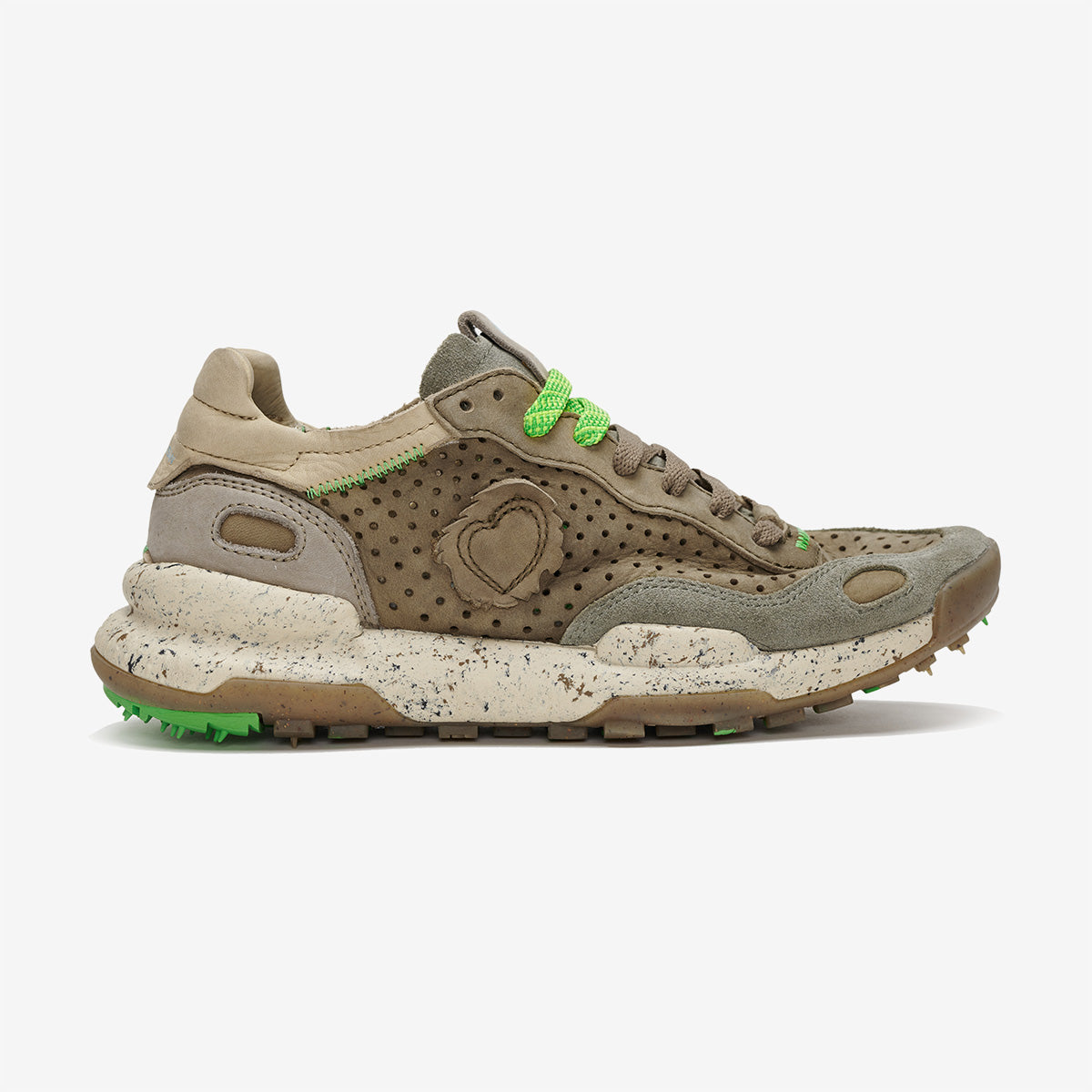 Chacrona, nuestra creación más consciente, llamada como la hoja amazónica utilizada por las tribus indígenas para conectar cuerpo y alma. Es nuestra interpretación de una zapa de ''cross training'' de los años 80, súper cómoda y duradera.