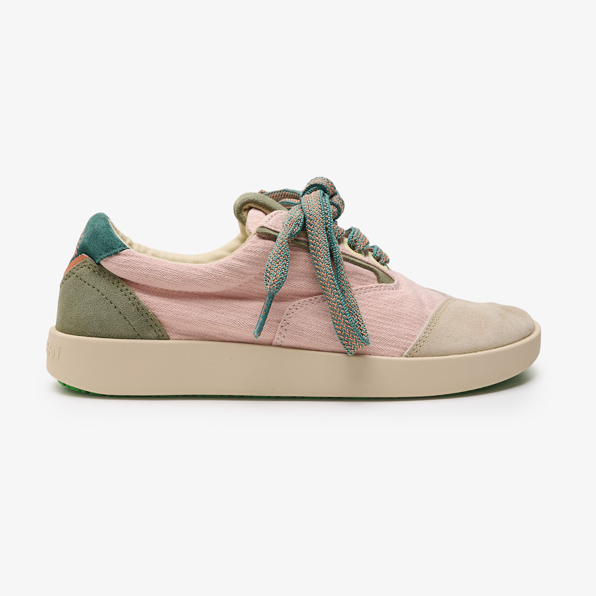 Hatko, the Kachina that brings wood, inspires this model, which pays tribute to the classic skate shoes of the 1970s. The XXL eyelets and the long, unique laces give it a semi-formal style and a unique personality. The SunKachina construction and its unique width result in a distinctive, singular volume. Made from a combination of linen/cotton and suede, this sneaker is fresh and extremely soft.