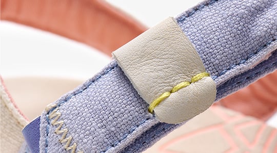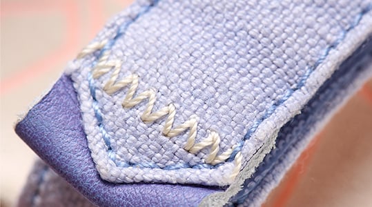 Every detail in our designs matters. Like this zigzag stitching with colorful threads that contrast beautifully with the linen, and the leather-trimmed strap for added durability.