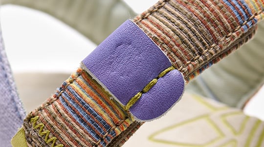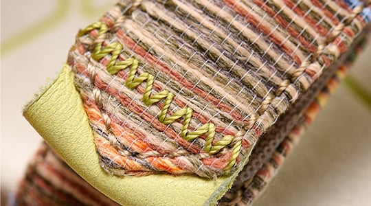 Every detail in our designs matters. Like this zigzag stitching with colorful threads that contrast beautifully with the Raffia, and the leather-trimmed strap for added durability.