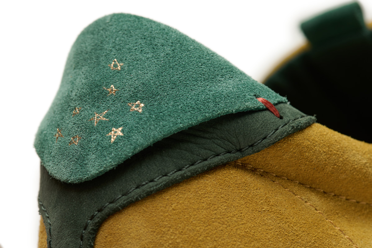 Inspired by the iconic football boots of the 1960s, it retains its retro essence with a decorative side stripe, bold stitching and a leather logo in relief on the side.